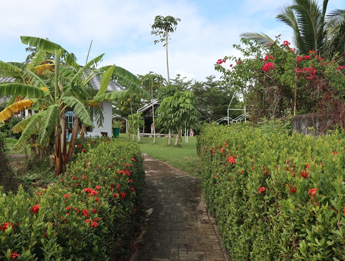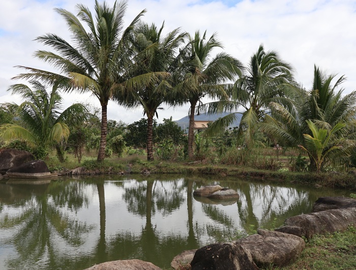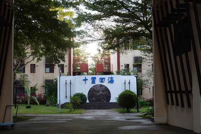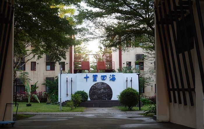 十里田海的住宿区采用黎族建筑风格,十八幢错落有致的小楼散落在椰林和翠竹之间。阳光洒落屋脊,屋舍与田野、荷塘交相辉映,构成一幅极具海南地域风情的田园画卷。